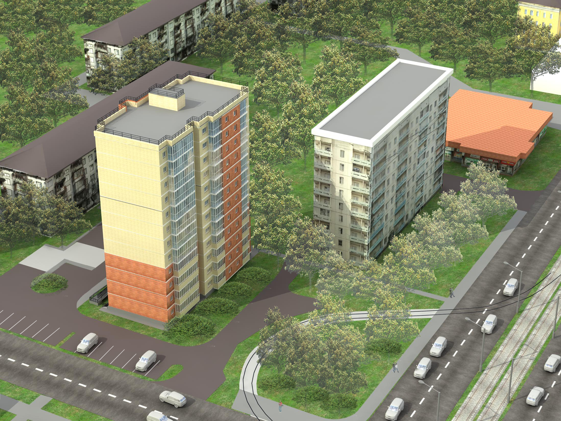 парковка на территории - 8, парковка вне территории - 19