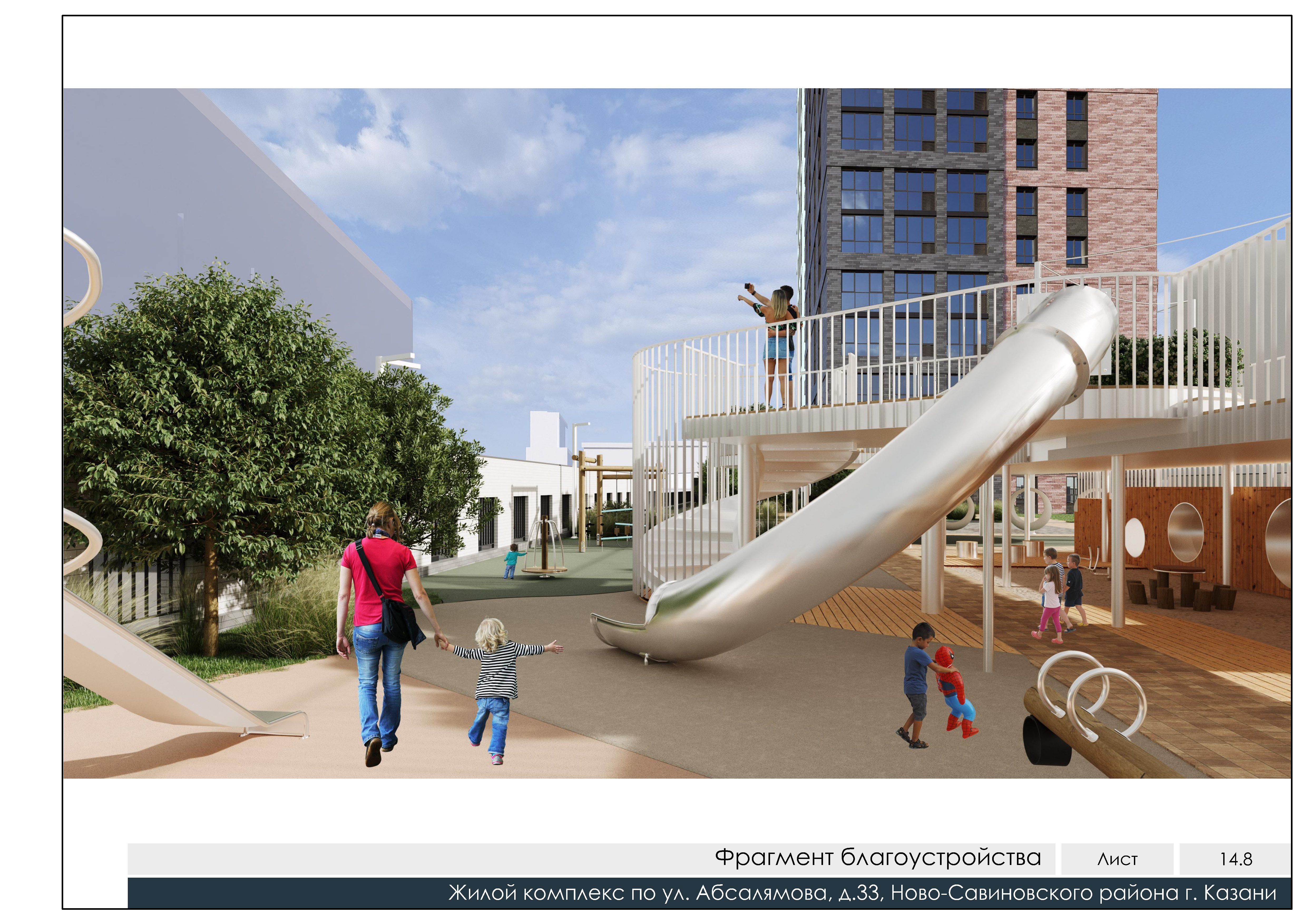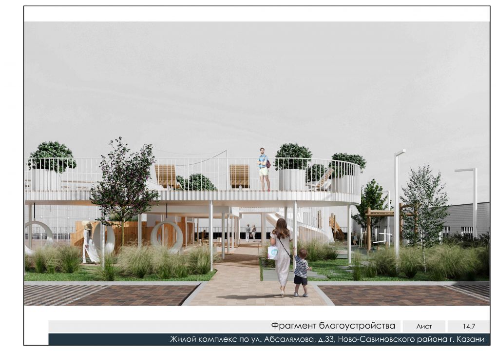 Среда комплекса спроектирована по вертикальному принципу: 95% площади участка занимает стилобат, внутри которого скрыт надземный паркинг на 100 машин, а на кровле развернут приватный двор-парк площадью 911 квадратных метров. Благоустройство выполнено в экостиле с использованием натурального дерева, гранитного отсева и рулонных газонов, при этом двор полностью изолирован от машин и приподнят над уровнем тротуара. Социальная база здесь беспрецедентна: до забора гимназии № 179 всего 21 метр, до детского сада № 151 — 20 метров, а на первом этаже самого ЖК откроется детский досуговый центр. Для владельцев электрокаров предусмотрено место с зарядным устройством, а для велосипедистов — парковки, интегрированные в общегородскую сеть велодорожек.