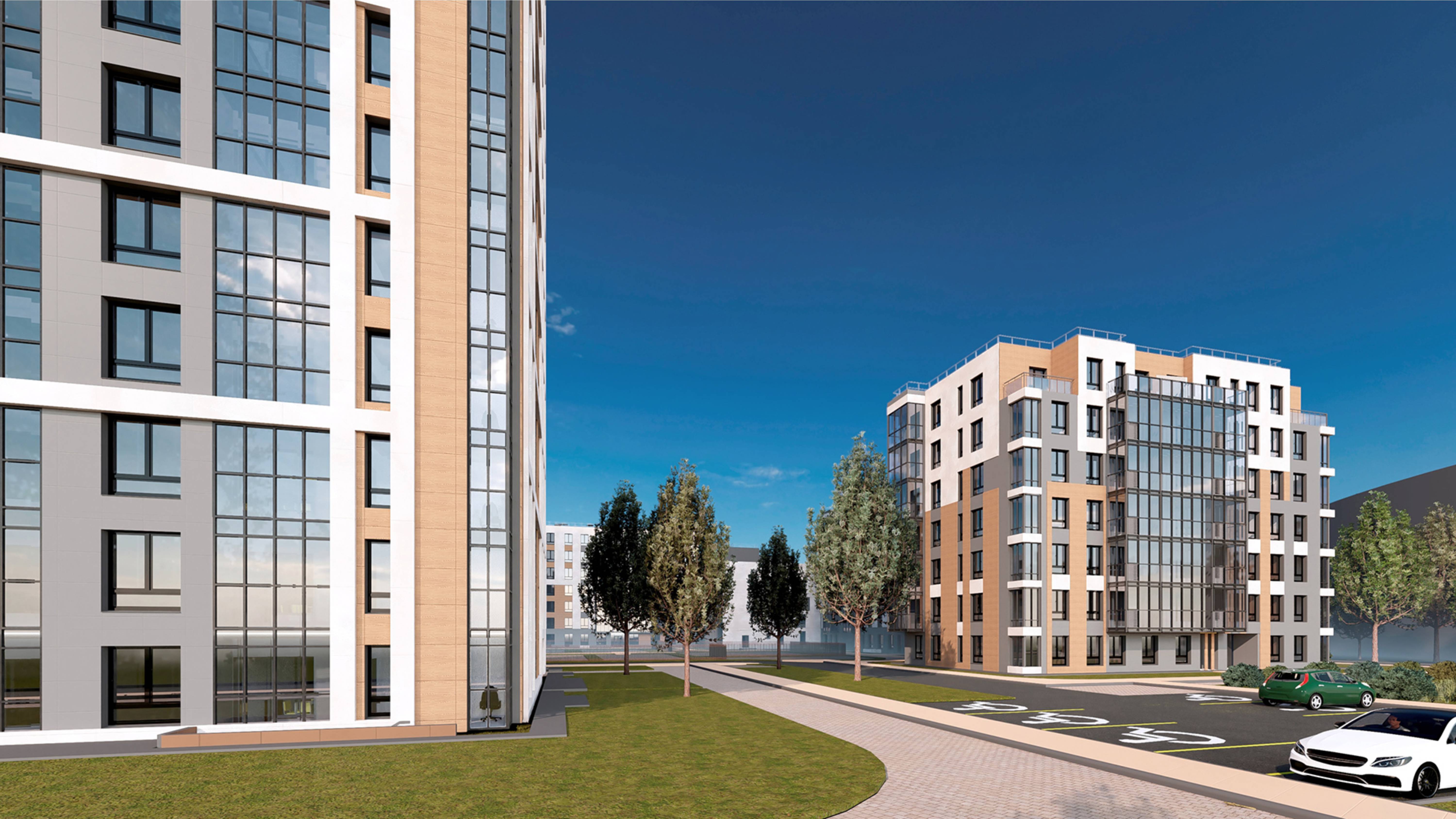 Внутренняя среда спроектирована как «15-минутный город» с закрытыми от машин дворами в ландшафтном стиле «Лес» из камня и дерева. Инфраструктура включает два четырехъярусных паркинга на 288 мест, индивидуальные келлеры в цоколе и систему «умный дом» с автоматическим открытием дверей по BTL-меткам. Для резидентов предусмотрены редкие форматы: квартиры с огороженными патио на первых этажах и лоты с террасами на верхних уровнях.
