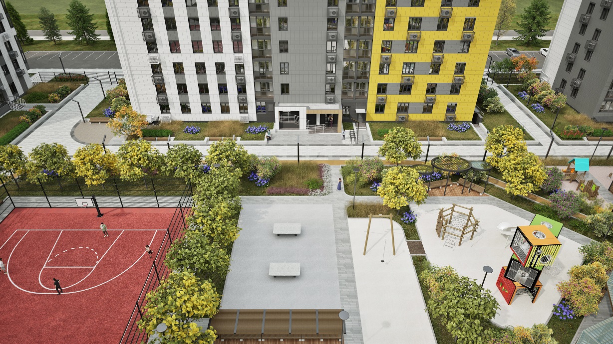 Социальная среда уже сформирована: в шаговой доступности находятся три школы и детский сад. Внутри квартала спроектированы ландшафтный дизайн, детские и воркаут-площадки.