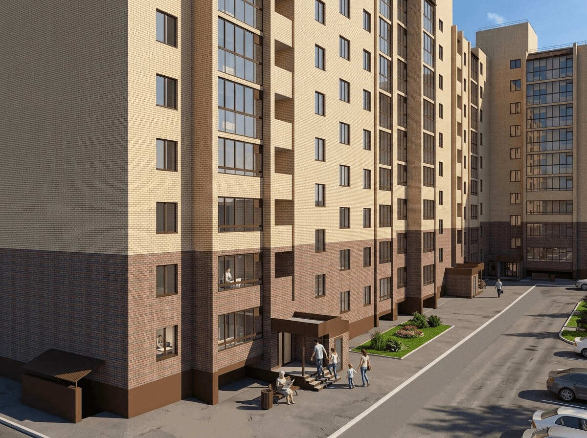 Девятиэтажный кирпичный дом на проспекте Ленина, 83 в Октябрьском — это классический проект от холдинга «Стронег» (СЗ Проспект), возведенный по бескаркасной технологии с перекрытиями из сборного железобетона. В трех секциях разместилось 135 квартир с высотой потолков 2,7 метра, при этом первый этаж полностью жилой, что гарантирует тишину без коммерческого шума. Участок площадью 0,22 га раньше был заасфальтированной автостоянкой и техногенным пустырем, а теперь превращается в современное жилое пространство. Застройщик опирается на собственные производственные мощности заводов Башкортостана, обеспечивая честную теплоемкость стен, рассчитанную на экстремальные морозы до -47°C.