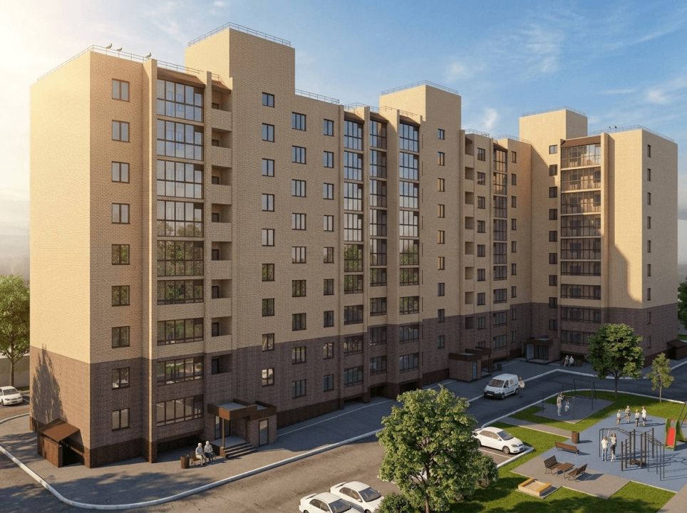 Девятиэтажный кирпичный дом на проспекте Ленина, 83 в Октябрьском — это классический проект от холдинга «Стронег» (СЗ Проспект), возведенный по бескаркасной технологии с перекрытиями из сборного железобетона. В трех секциях разместилось 135 квартир с высотой потолков 2,7 метра, при этом первый этаж полностью жилой, что гарантирует тишину без коммерческого шума. Участок площадью 0,22 га раньше был заасфальтированной автостоянкой и техногенным пустырем, а теперь превращается в современное жилое пространство. Застройщик опирается на собственные производственные мощности заводов Башкортостана, обеспечивая честную теплоемкость стен, рассчитанную на экстремальные морозы до -47°C.