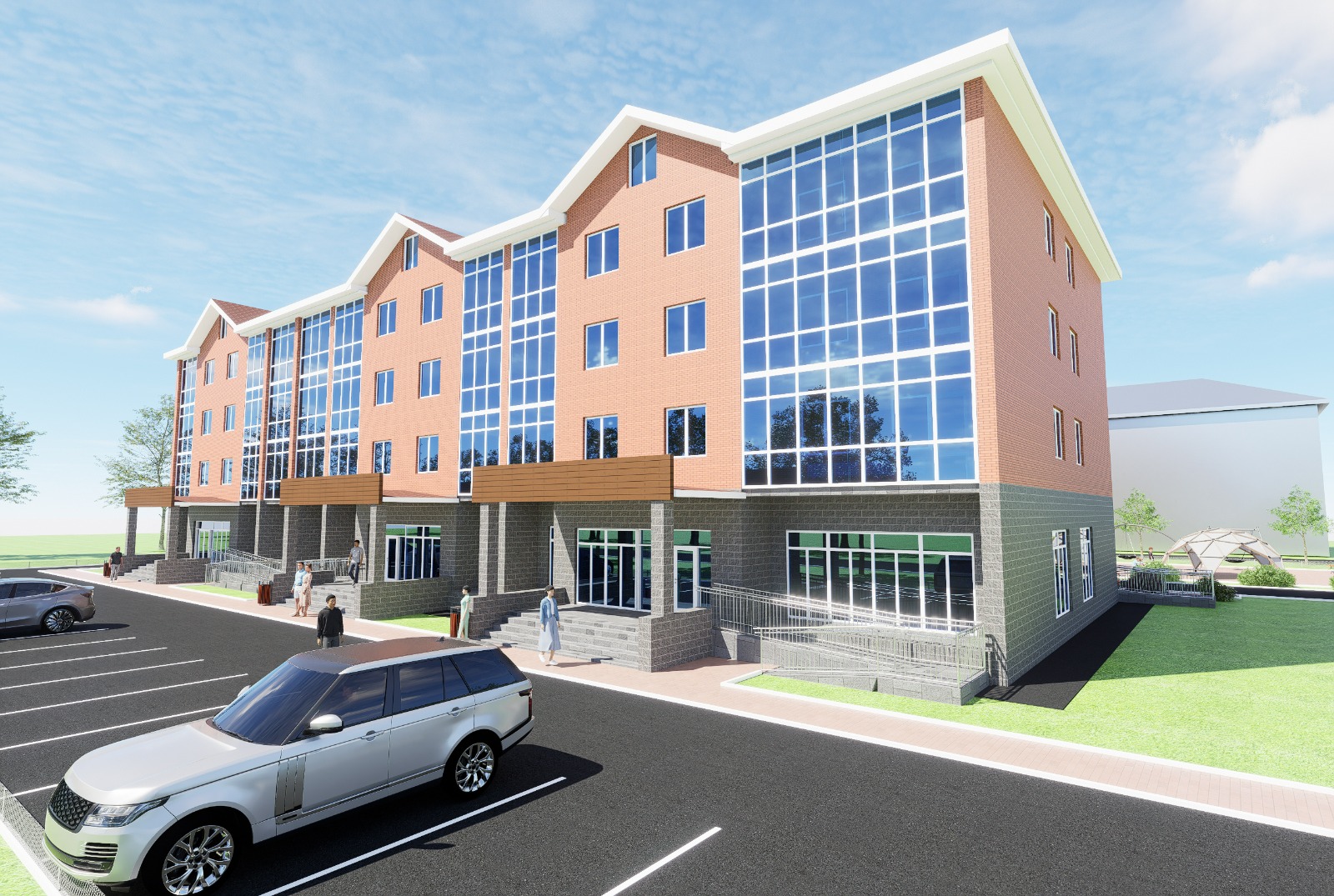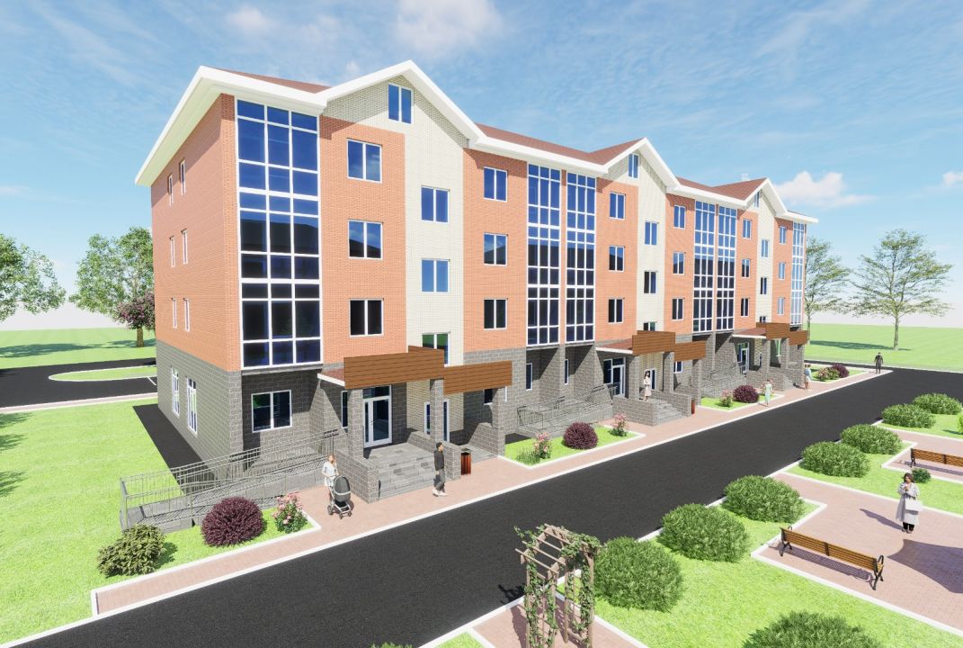 Проект объединяет жилую функцию и коммерческую инфраструктуру — первый этаж отведен под магазин. Благоустройство двора занимает треть земельного участка и включает детскую, спортивную площадки, а также зону отдыха, разделенные широкими асфальтированными проездами. Для автомобилей предусмотрено 25 парковочных мест, включая увеличенные слоты для маломобильных групп населения. Безопасность обеспечена круговым доступом спецтехники и прямым заездом со стороны улицы Бакалинской, а центральная районная больница находится в 300 метрах от дома. Путь на автомобиле до административного центра, школ и сетевых супермаркетов занимает не более 7 минут.